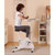 Du kannst die Pultplatte um 38 cm in der Höhe verstellen und um 20 cm in der Tiefe. Die Maximalbelastung ist 25 kg.