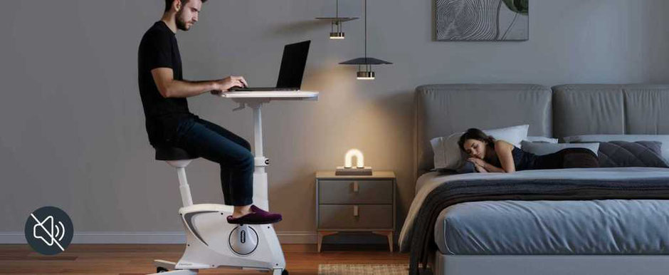 Die Lautstärke der Workstation hängt davon ab, wie schnell Du trittst. Im normalen Betrieb wirst kaum Betriebsgeräusche hören (< 50 dB)
